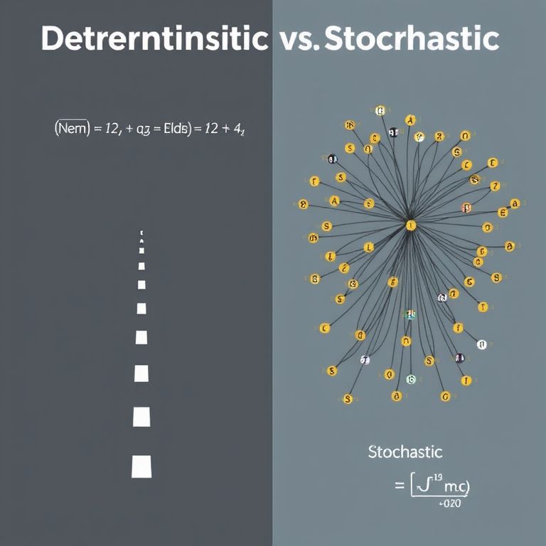 Key differences in practice Deterministic approaches work well when relationships are stable and data is clean. They’re fast, transparent, and easy to explain to a client or a risk committee. Stochastic methods shine in volatile or regime-changing environments, where tail risks and volatility bursts matter. They let you quantify risk of ruin, estimate value-at-risk under different scenarios, and run Monte Carlo trials to test how strategies hold up when luck isn’t on your side.